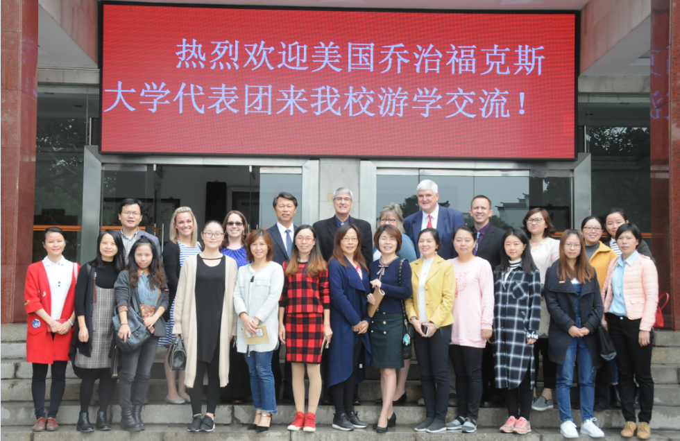 岳阳市一中热情接待了Marc Shelton院长一行,我校教育硕士导师、一中校长廖炳晔陪同参观了一中美丽的校园环境,并介绍了一中校情。随后,乔治福克斯大学代表团走进学生课堂,听取岳阳市一中教师的英语课。课上,老师和学生们亲切交流,课堂互动热烈。