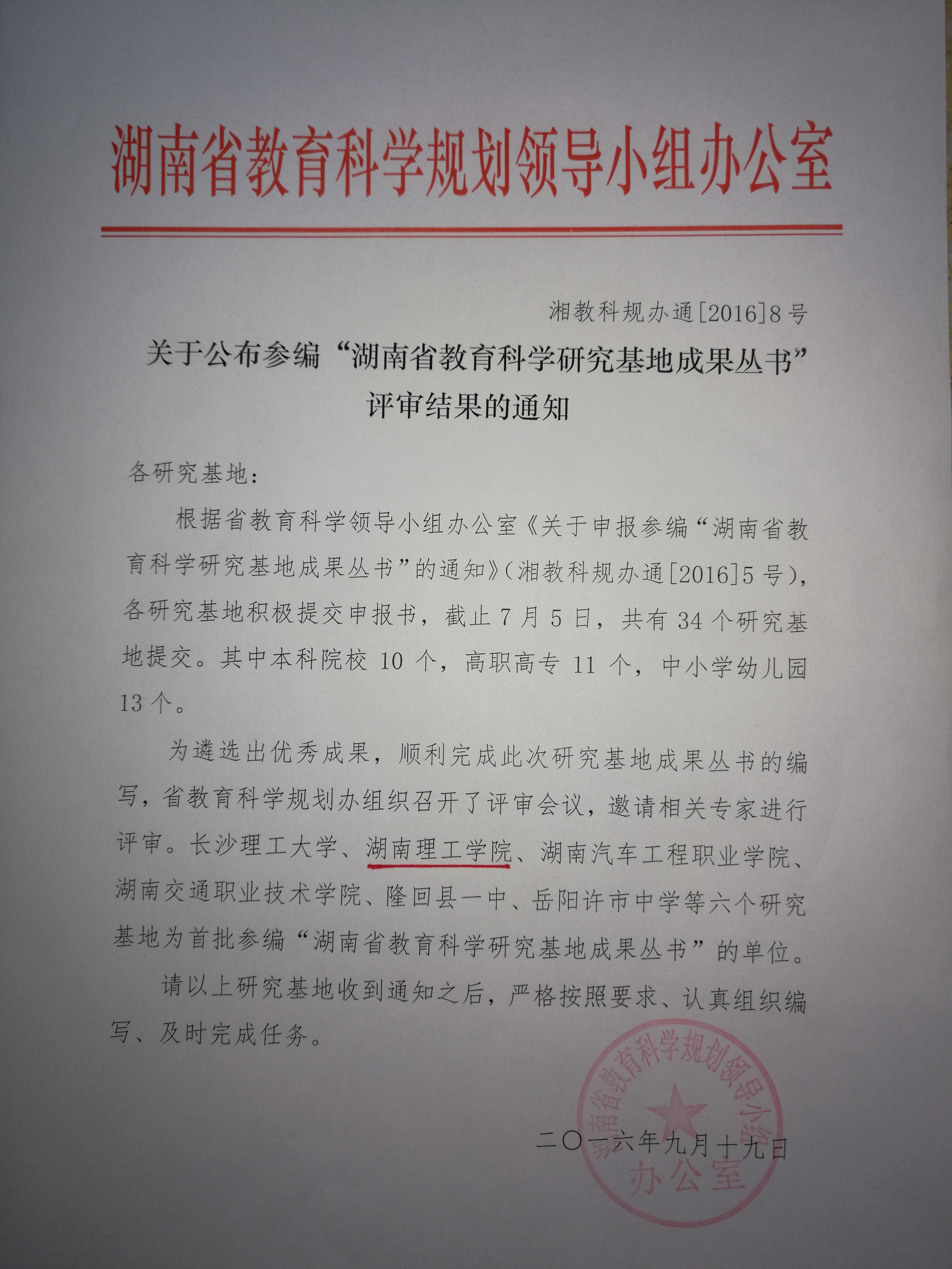 日前,湖南省教育科学规划领导小组办公室公布“湖南省教育科学研究基地成果丛书”评审结果,我校教育科学研究所刘理教授主持申报的《全日制教育硕士专业学位研究生培养模式研究》获批立项,由省教科规划办资助出版,我校成为全省首批参编“湖南省教育科学研究基地成果从书”的单位之一。