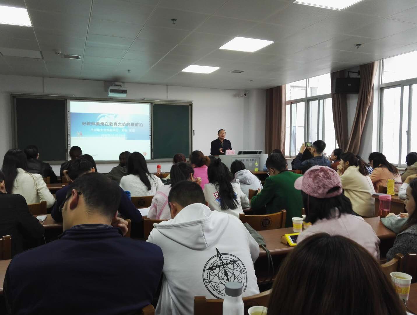 10月19日下午,yL23411永利集团官网登录第十二期“滨湖师范讲堂”在南院新图书馆12405学术活动室如期举行。本期讲堂特邀到华中师范大学博士生导师张屹教授和岳阳电大校长袁征高级工程师联袂开讲。教育科学研究所所长刘理教授主持,2017级全体教育硕士参加了讲座。