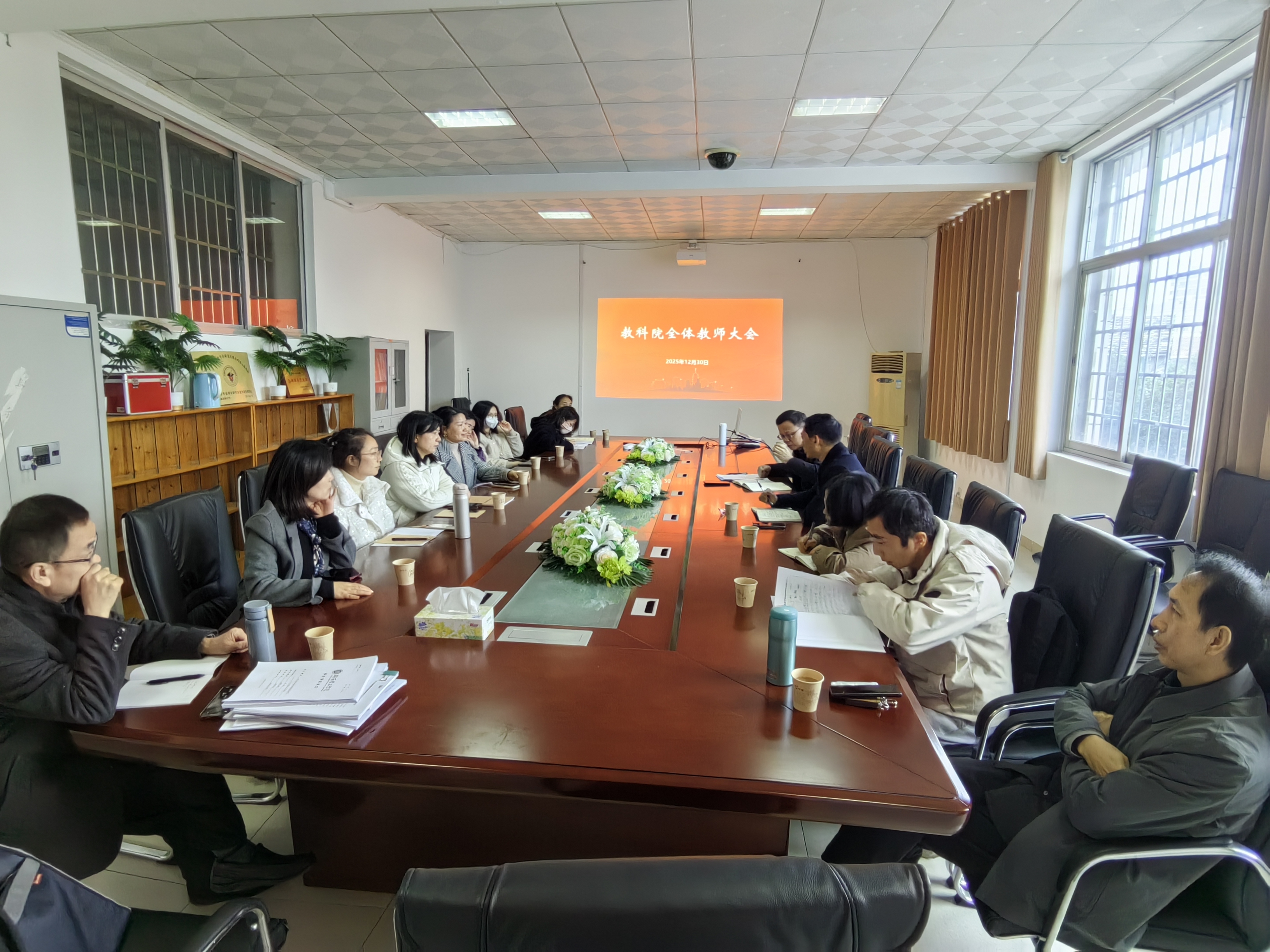 2025年12月30日下午,我院召开全体教师大会,传达学校有关会议精神,专题部署期末各项重点工作,全体教师参加会议。