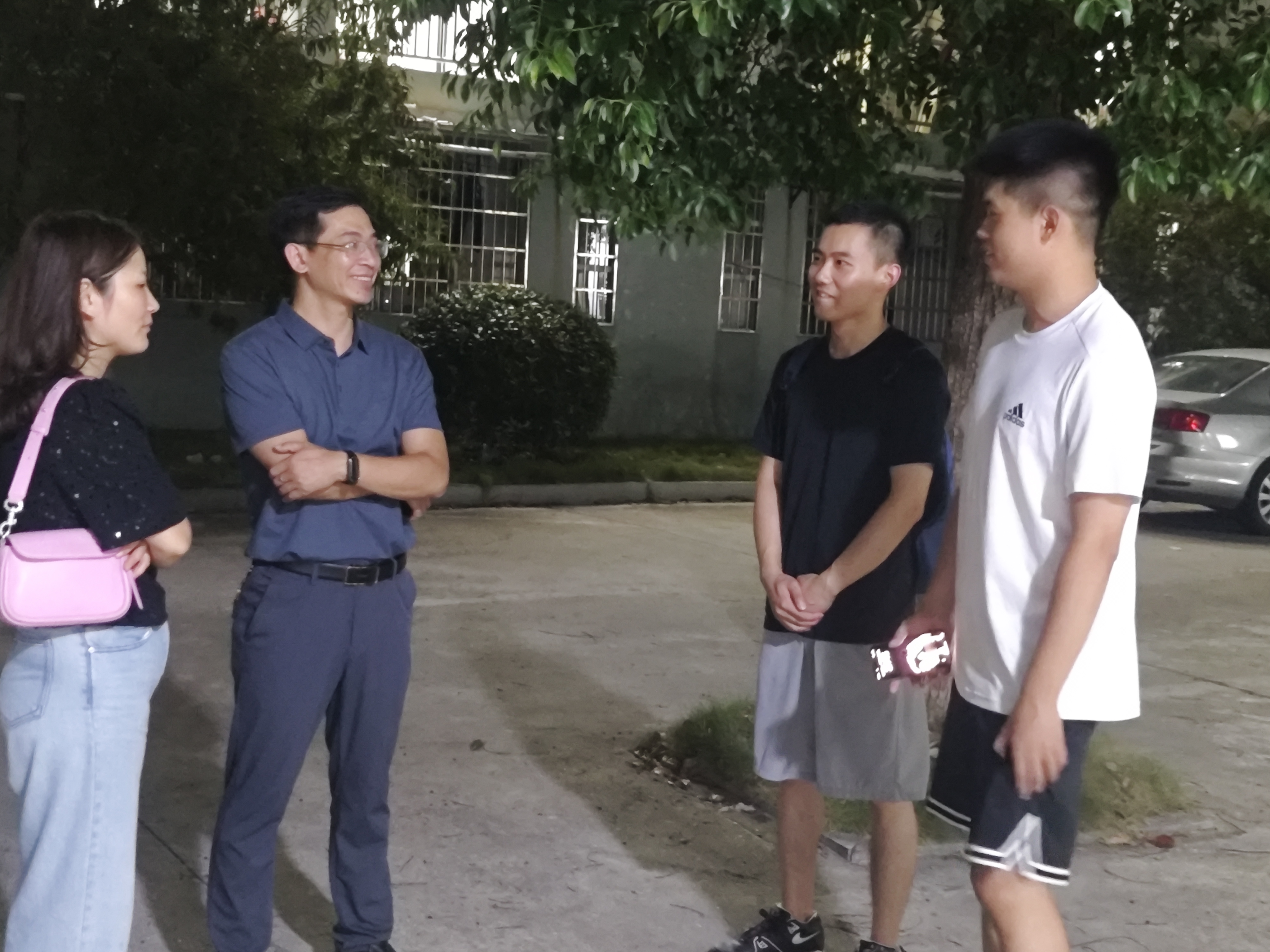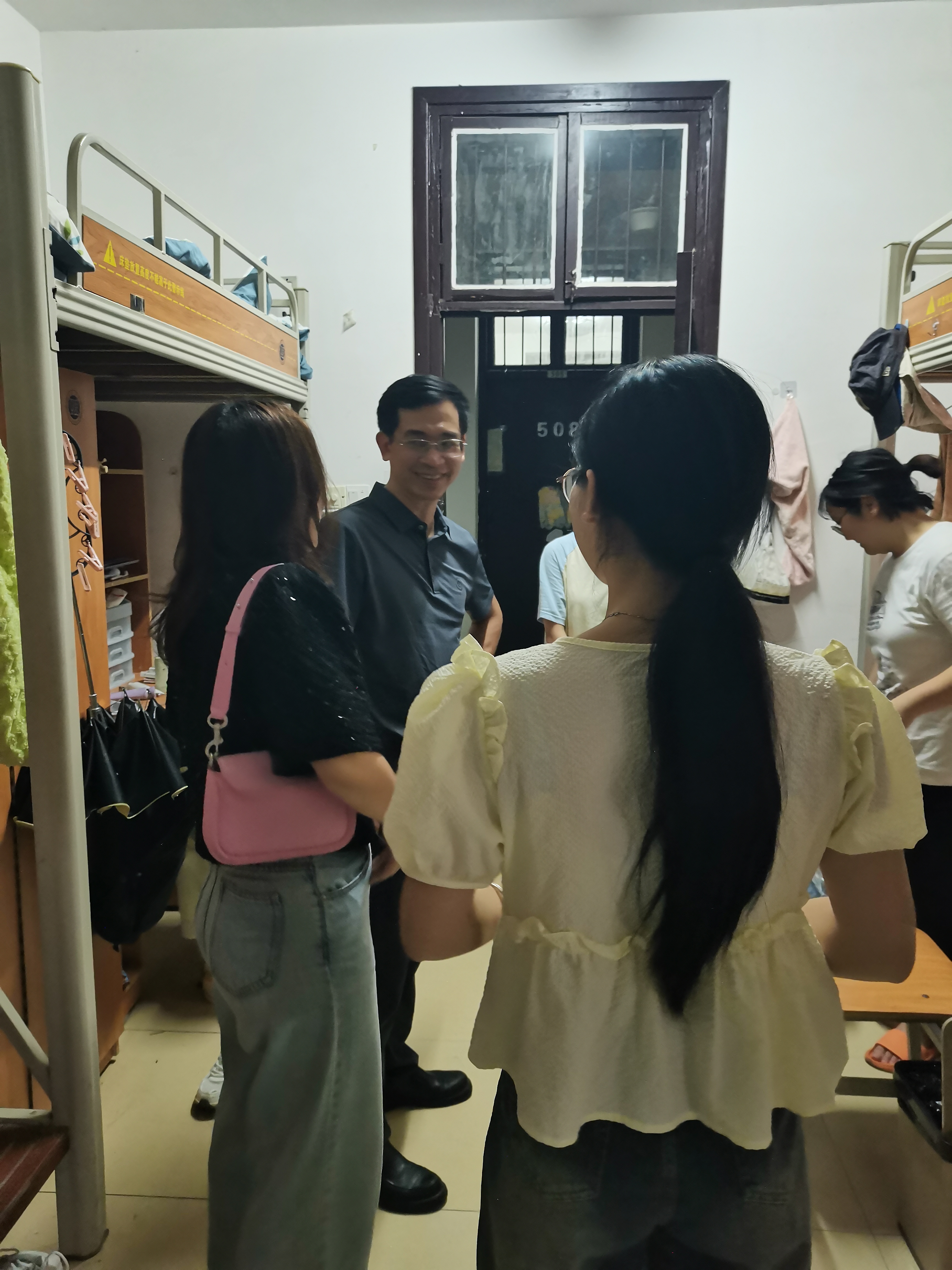 9月9日晚上,教育科学学院党总支书记钟坚和研究生党支部书记王炜走访新生寝室,了解新生的生活环境、适应情况和学习状态。