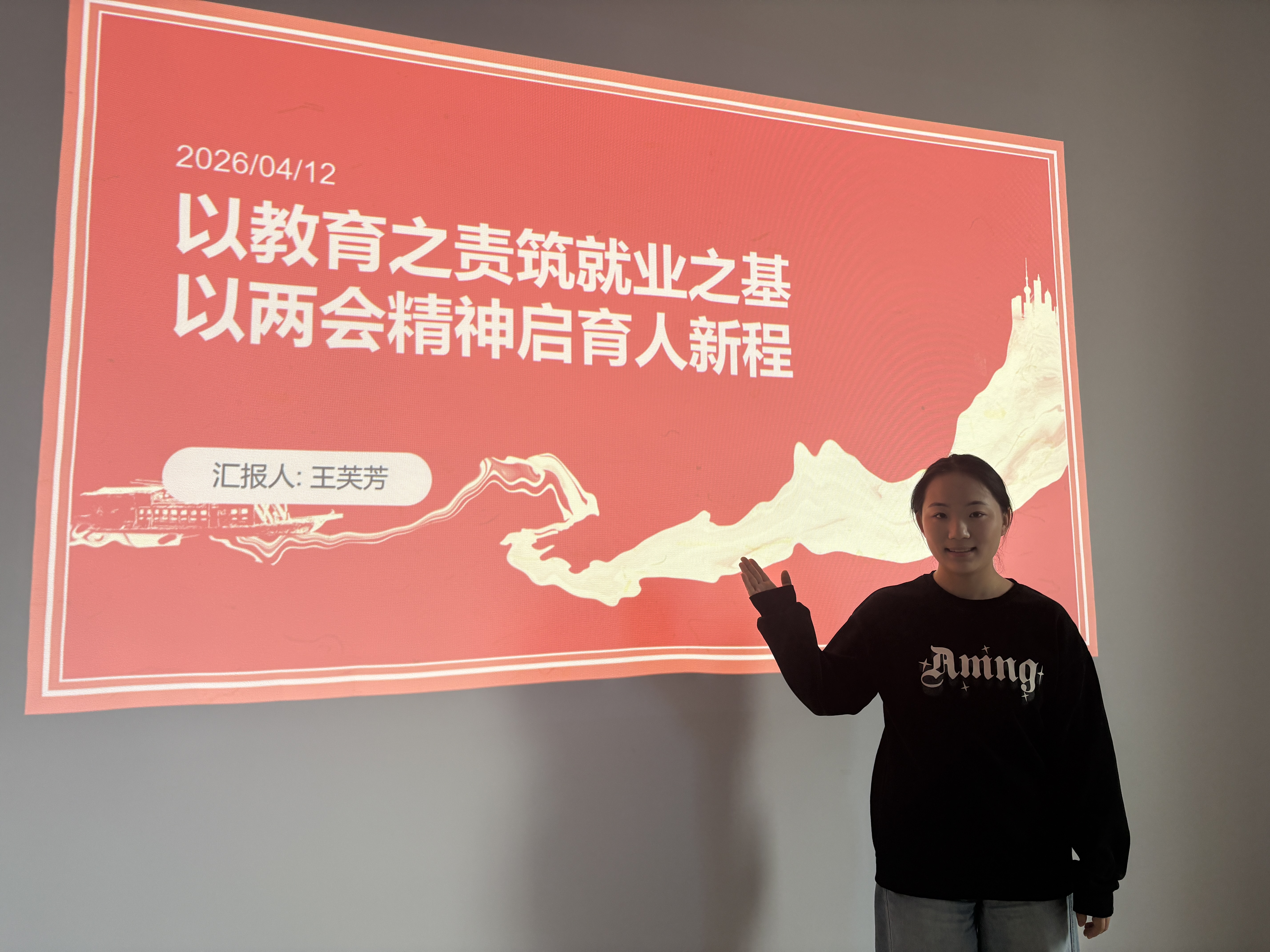 本次专题党课由王芙芳同志主讲,她以“以教育之责筑就业之基 以两会精神启育人新程”为题,紧扣学习贯彻习近平新时代中国特色社会主义思想主线,围绕2026年全国两会精神、“十五五” 规划纲要及习近平总书记的就业观核心部署展开深入解读。结合小学教育专业研究生的身份特点,系统阐释了国家基础教育高质量发展的战略布局,明确新时代准教师肩负的三重使命。要求党员苦练本领、勇担青年责任。