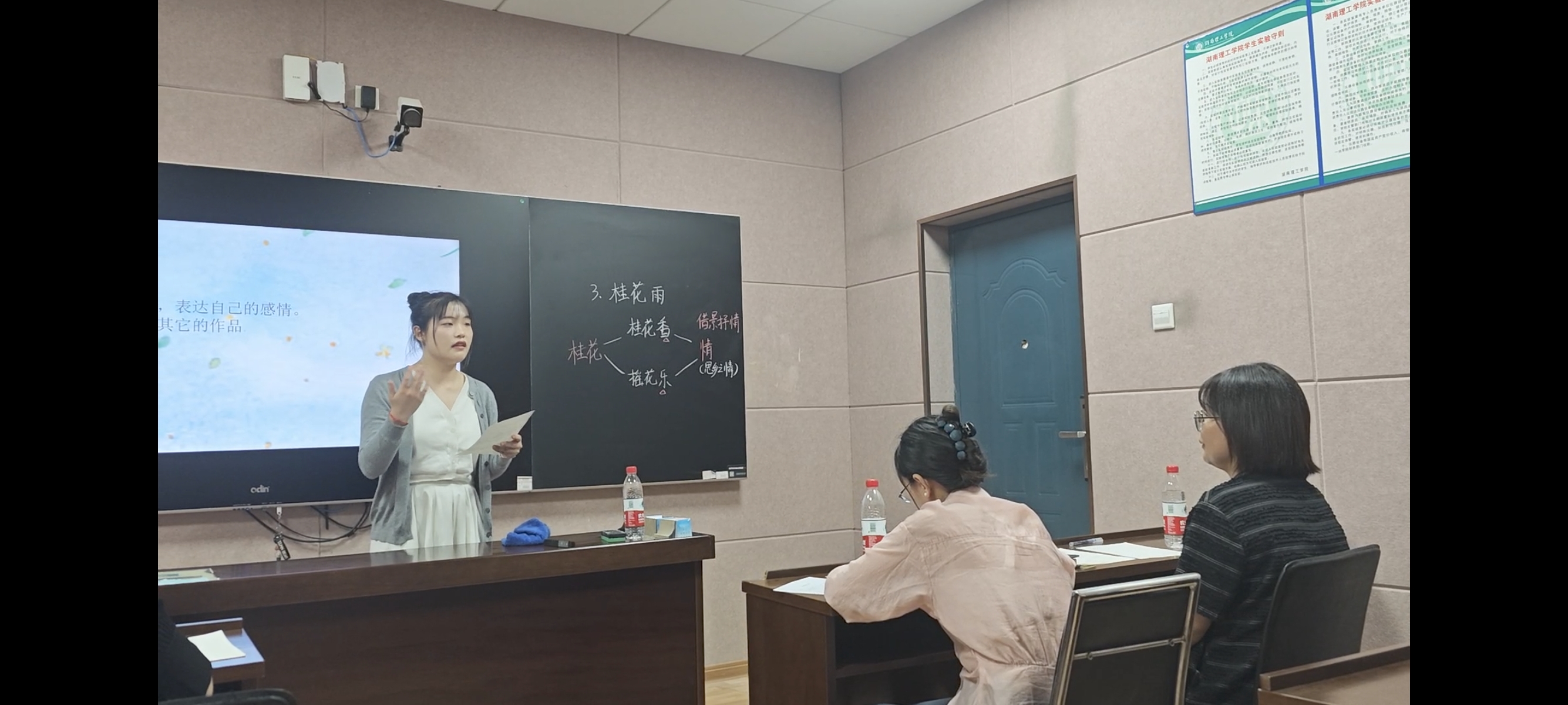 9月24日下午,教育科学学院组织了一场别开生面的集中模拟教学活动。参加模拟教学的4位同学是即将参加下月于沈阳举行的“田家炳杯”全日制教育硕士专业学位研究生小学教育专业教学技能大赛复赛的选手,除我院隋幸华博士、李统兴教授、洪冬美副教授外,活动还特别邀请了岳阳市朝阳小学副校长、小学语文教学名师蒋雪芳和岳阳市八字门小学教学名师朱猛军作为专家评委,进行现场指导。据悉,这是自4名同学进入复赛以来,学院邀请校内外专家精心组织的第三次集中模拟教学实战演练,旨在进一步提升参赛选手的教学技能和竞赛水平。