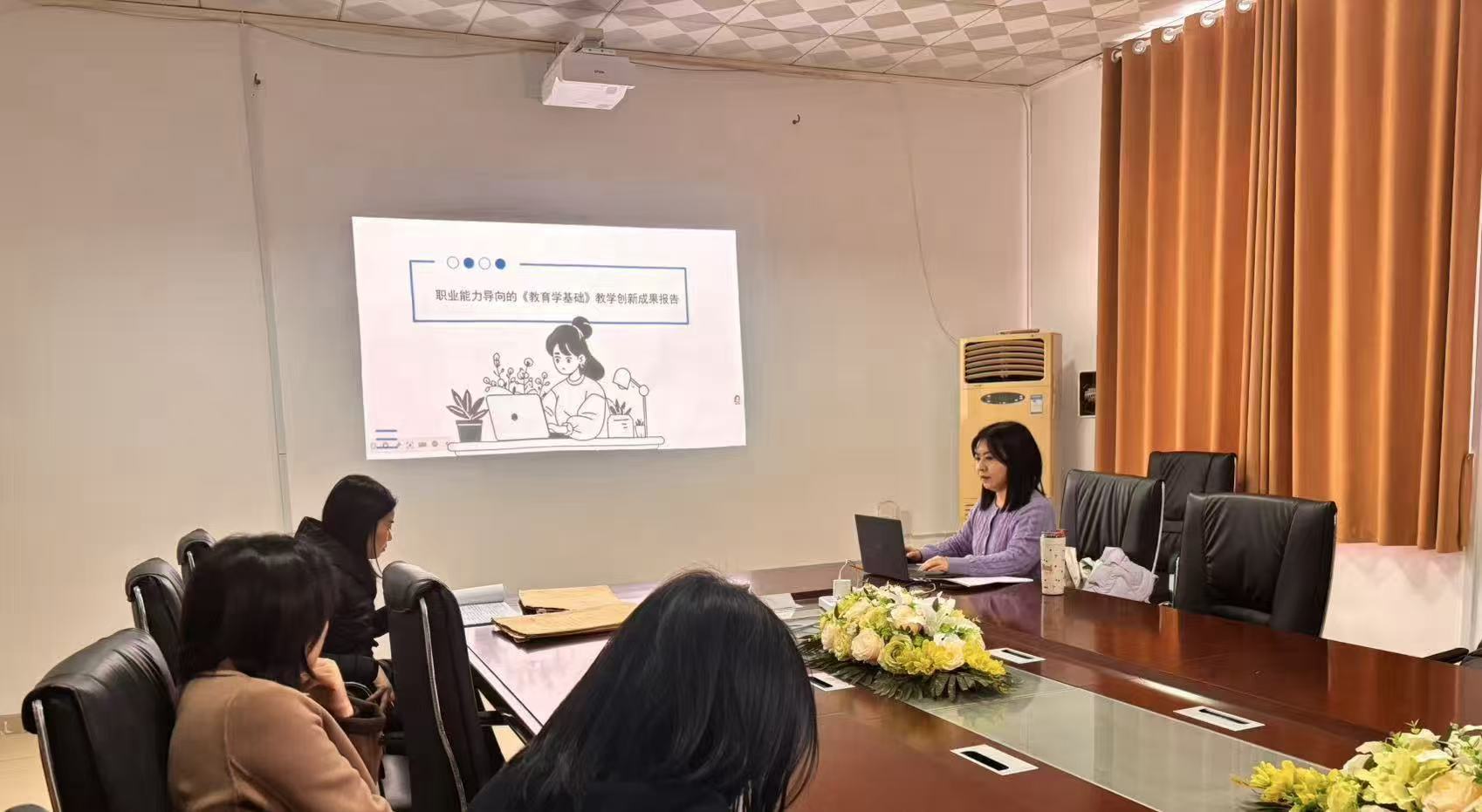 活动中,童沁老师以《教育学基础》课程为内容进行了教学展示。她围绕课程核心知识点,运用多元教学手段,呈现了一堂结构清晰、互动充分的示范课。展示结束后,与会教师围绕教学设计、内容组织、教学方法、课堂互动等方面展开深入研讨,积极提出优化建议,现场研讨氛围热烈。