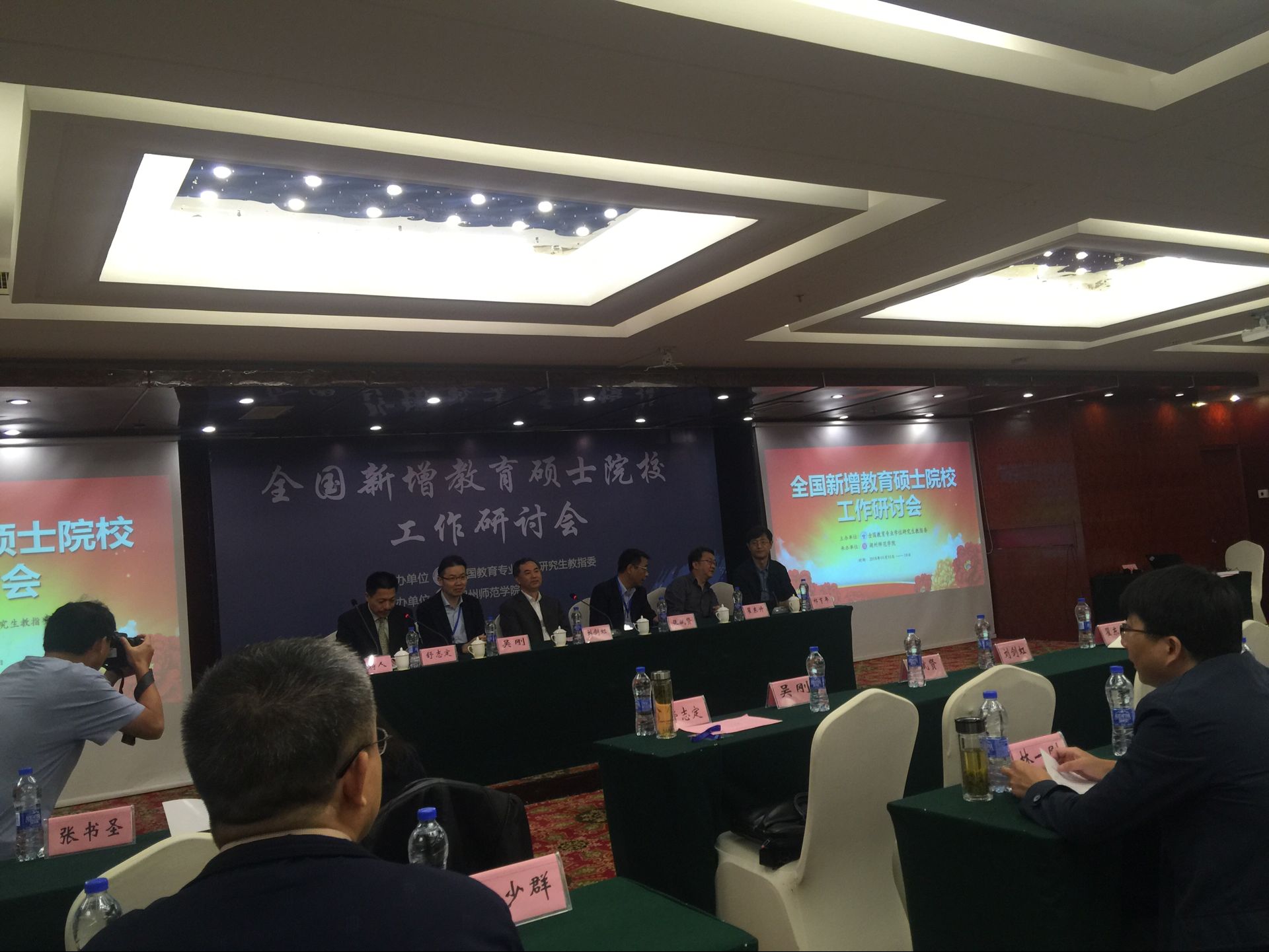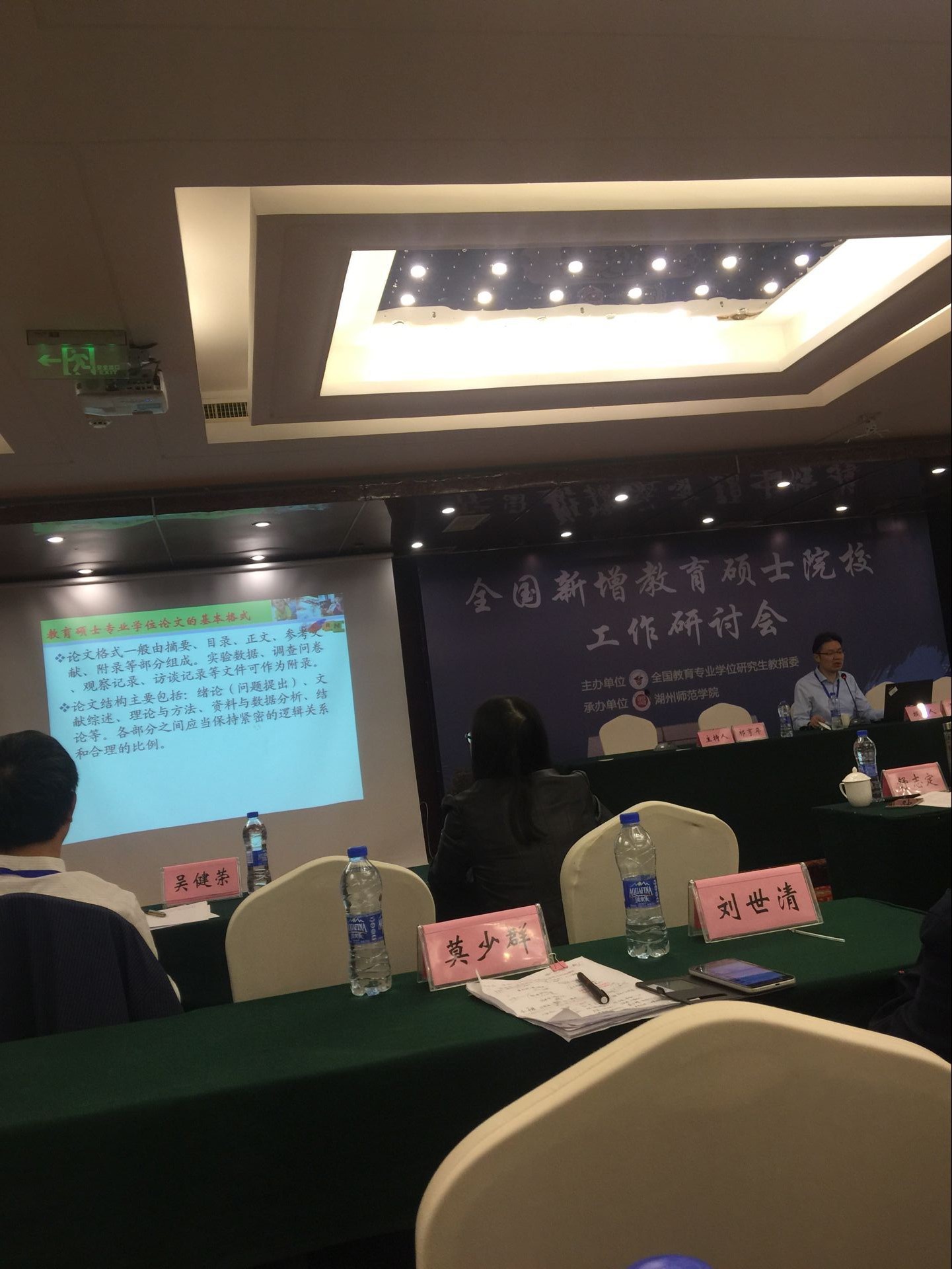 研讨会上,全国教育专业学位教育指导委员会秘书长张斌贤教授对教育专业学位研究生教育的若干问题进行了讲解;副秘书长吴刚教授对教育硕士专业学位论文基本要求进行了解读。天津师范大学、东北师范大学、沈阳师范大学等学校的专家分别解读了教育硕士专业学位研究生实践教学基本要求、教育硕士双导师制的探索、培养方案、专业能力完成的支持体系建构、教学案例的标准和标志要求等。会议还以“新增教育硕士院校的若干问题”为主题进行了深入探讨,分享了各校教育硕士研究生培养的经验。我校参会的两名教师均在研讨会上发言,并与其它院校教师进行了交流。