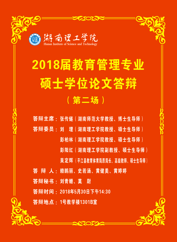 2018届教育管理专业硕士学位论文答辩会第二场预告