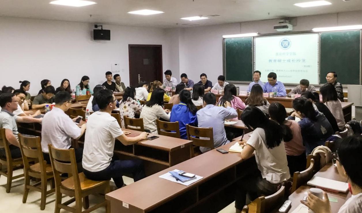 涂艳国教授率先发言,他从自身求学经历出发讲述了求学之苦,但在后来四十年的从教生涯中又真切体会了桃李满天下的成就感和幸福感,即治学之乐。随后,岳伟副教授剖析了研究生在求学阶段需培养的素养和能力,并提出了八条建议:形成大教育观念、与导师建立共进关系、加强科研方法的训练、了解当今教育变革问题等。田友谊教授从解读“为什么要读研?”这一问题开始了他的经验分享,并指出研究生应具备三种品质:享受孤独、学会自律和学会批判。罗祖兵教授告诉大家在读研期间一定要寻找到自己研究的兴趣点,多读名著和专著,拓宽知识面。罗儒国副教授则分享了一些寻找好书的方法和技巧,并指出硕士研究生一定要具备“四心”和“四个意识”,分别是信心、专心、恒心和淡泊名利之心;问题意识、方法意识、跨学科意识和卓越意识。王帅副教授则强调作为一名新时代的研究生要有自我设计能力和自我反省能力,做研究注定是一件苦乐交织的事业,正因为有苦有乐,才会成就波澜不惊的美好人生。最后,王卫华副教授作总结性发言,他解答了曾经困惑他许久的问题:“研究生究竟有何不同?”——研究生思考问题的方式与他人不一样,因为研究生具备审辩思维和批判能力。