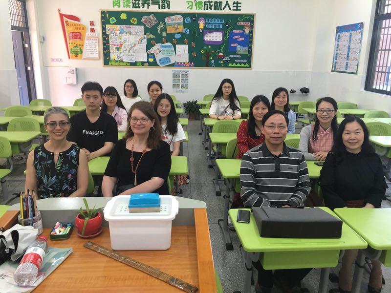 月22日下午,来自美国乔治福克斯大学的两位教授Tatiana和Megan,在学校教育科学学院院长刘理的陪同下,一同参观岳阳市白杨坡小学。
