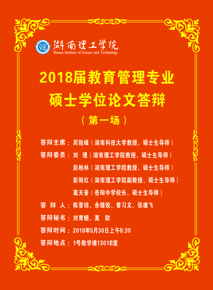 2018届教育管理专业硕士学位论文答辩会第一场预告