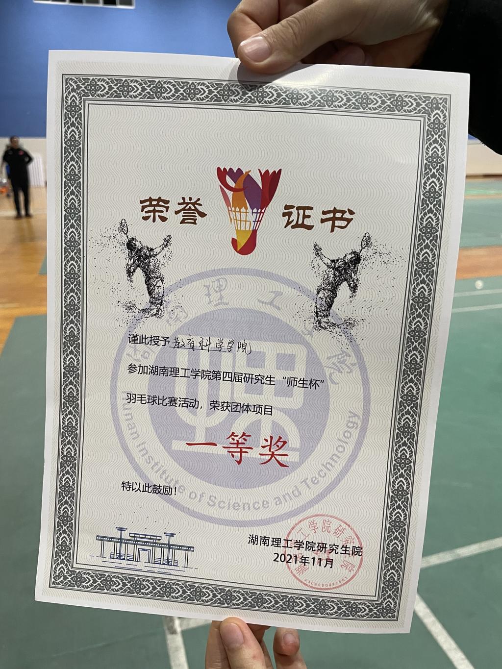 yL23411永利集团官网登录高度重视此次比赛。现场比赛非常激烈,所有运动员都全力以赴去争取最好的成绩。经过激烈的角逐,yL23411永利集团官网登录团队不负众望,获得本次“师生杯”羽毛球赛一等奖的好成绩。